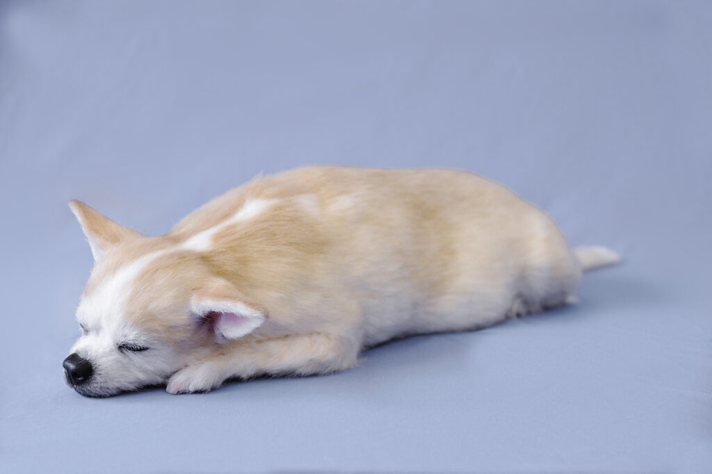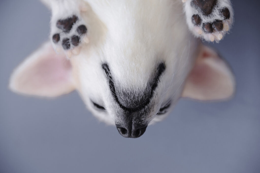我们根据爱犬的照片和尺寸,编织出与爱犬同样的体毛,头部的毛是一根一根植发而成,皮肤、肉球、爪子等更是量身制作,大约耗时3个月,忠实重现爱犬的姿态。