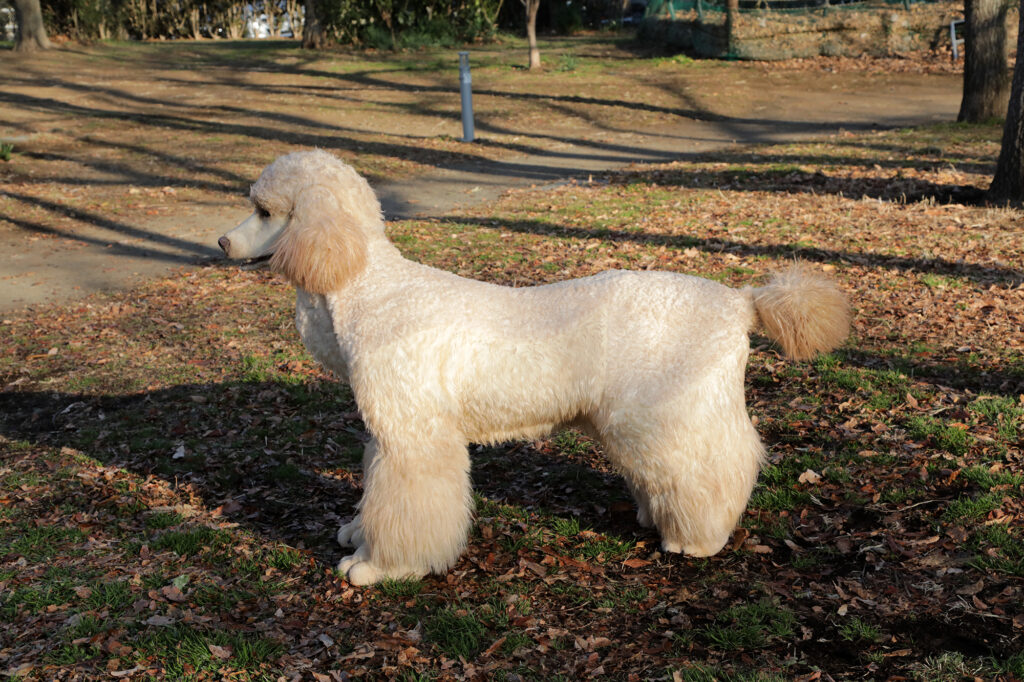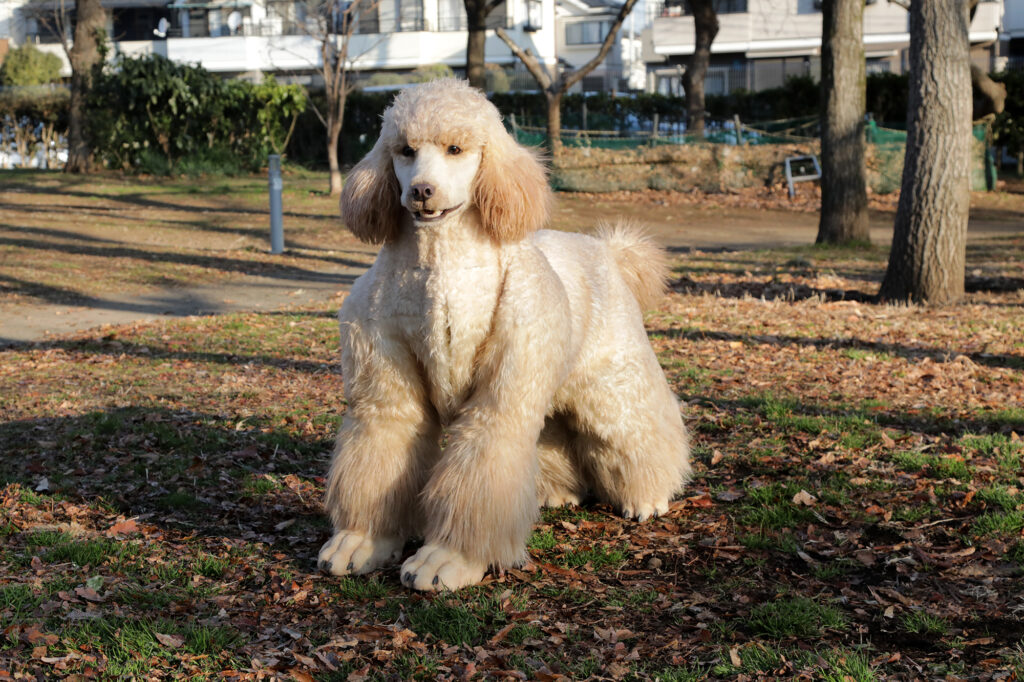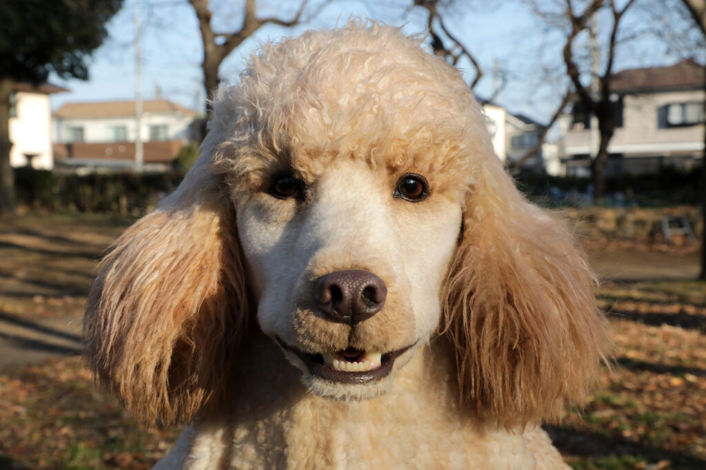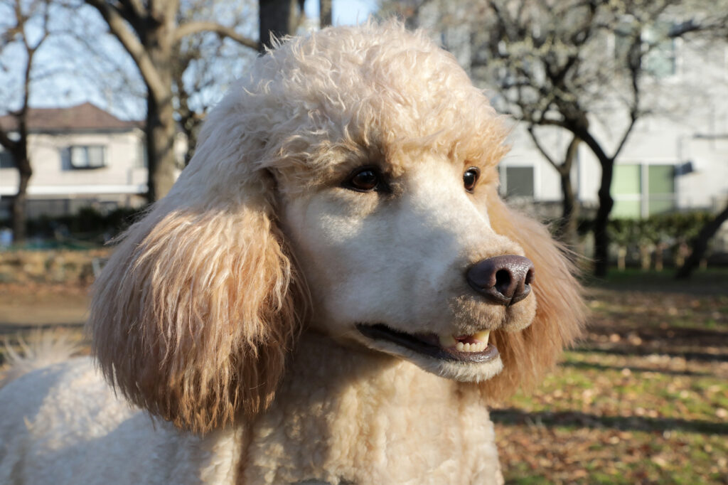 We received a request from an individual to create a dog costume. This costume is modeled after a standard poodle, realistically replicating the appearance of a dog walking on all fours, just like a real one.