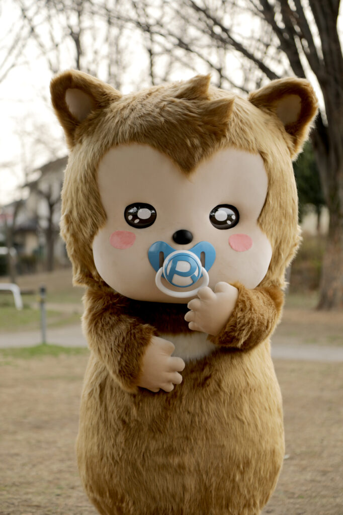 取外し可能な専用のおしゃぶりも制作。また、着ぐるみの上から着る衣装も同様に制作しました。